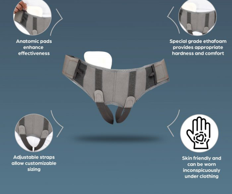 . حزام الفتق يتم ارتداؤه تحت الملابس يمنع الأنسجة من الانتفاخ -