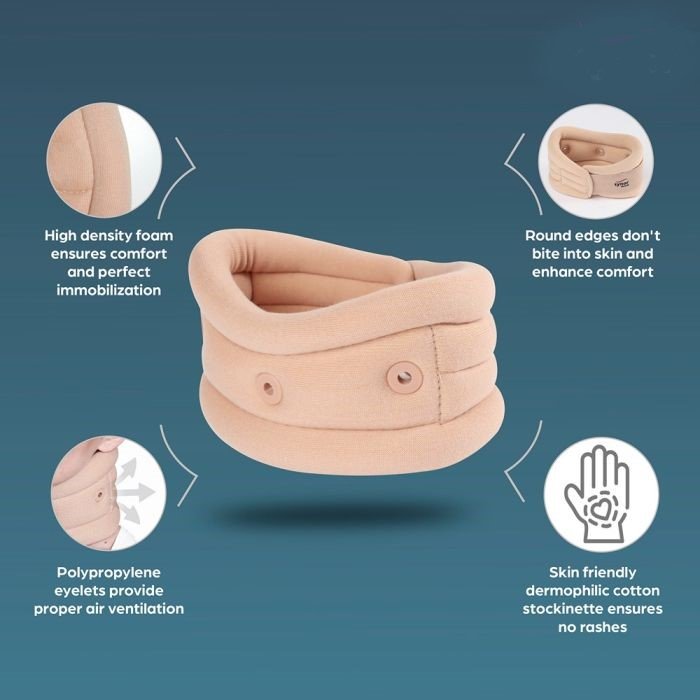 -Soft foam construction with integrated reinforcement splint provides firm support for the unstable neck